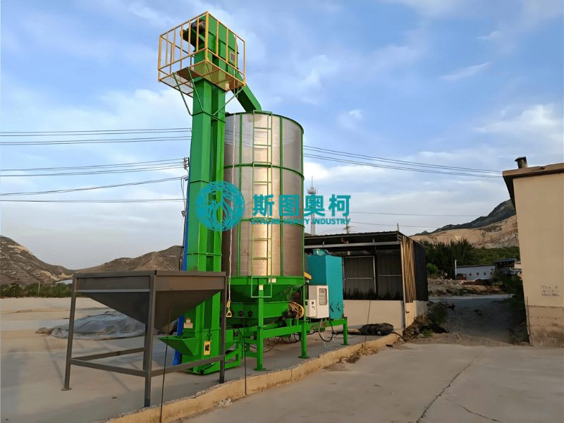 1.Loading and Circulation: Wet grain is loaded into the dryer's hopper and then lifted to the top of the drying chamber via a bucket elevator. Inside the chamber, the grain flows downward slowly by gravity between specially designed louvers or columns, ensuring continuous and uniform circulation throughout the drying process .