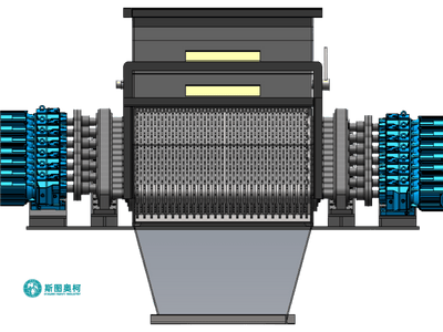 1. Material Feeding & Transport: Raw materials enter the feed end and are conveyed forward by rotating parallel shafts equipped with discs or star-shaped rollers.