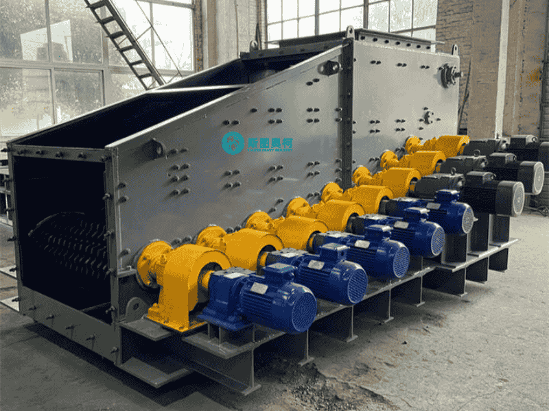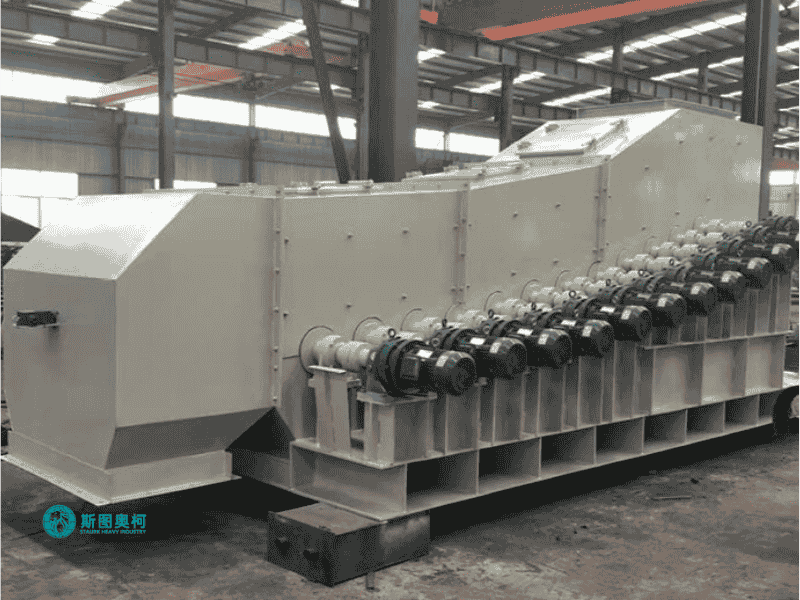 2. Size Separation Process: Smaller particles fall through adjustable gaps (5–300mm) between rollers, while oversized materials continue moving toward the discharge end.